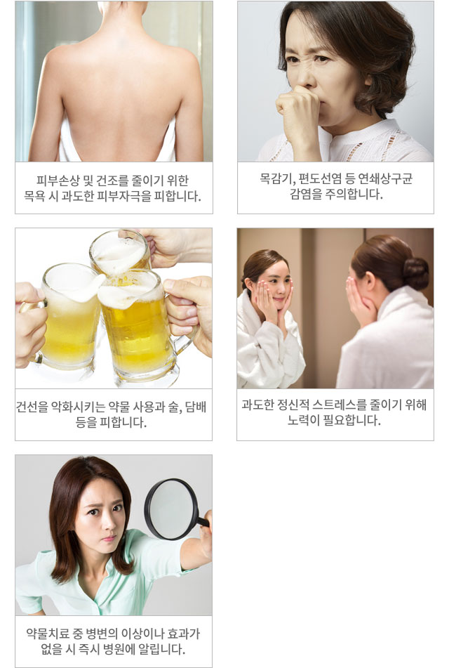 전신에 나타나는 붉은 반점과 가려움악화되었다가 호전되기를 반복하는 건선이라면 로얄에서 치료받아야 합니다.
